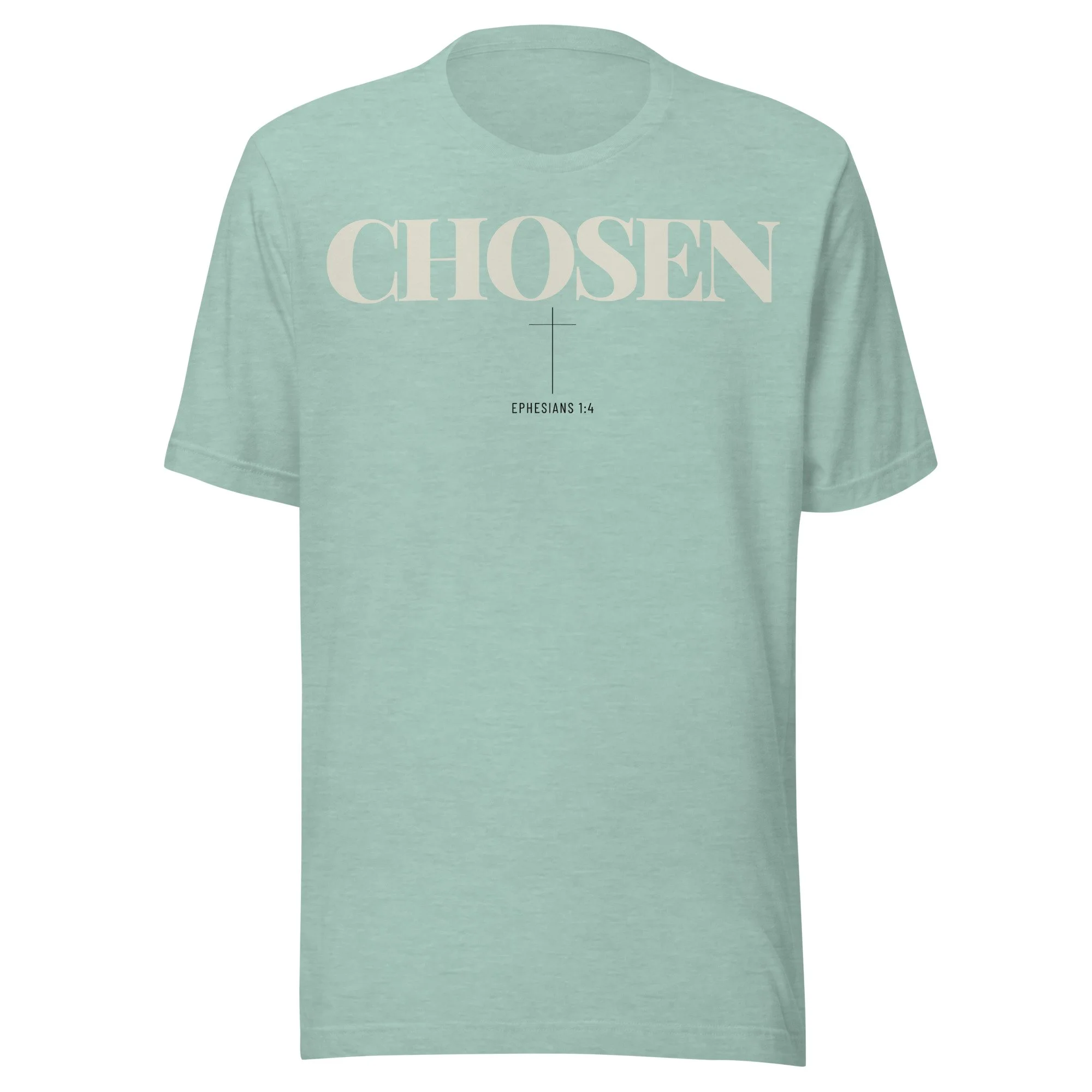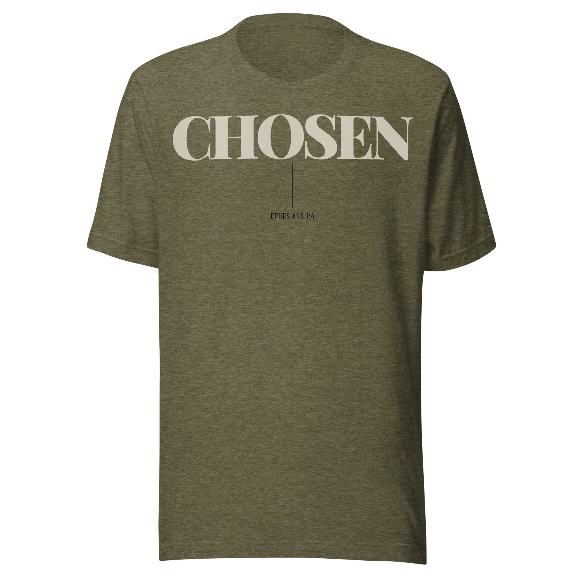 Not because of what you've done or who you've become — but because of who He is. The Chosen Tee is a daily reminder of the identity that was yours before the world ever got a chance to tell you otherwise.