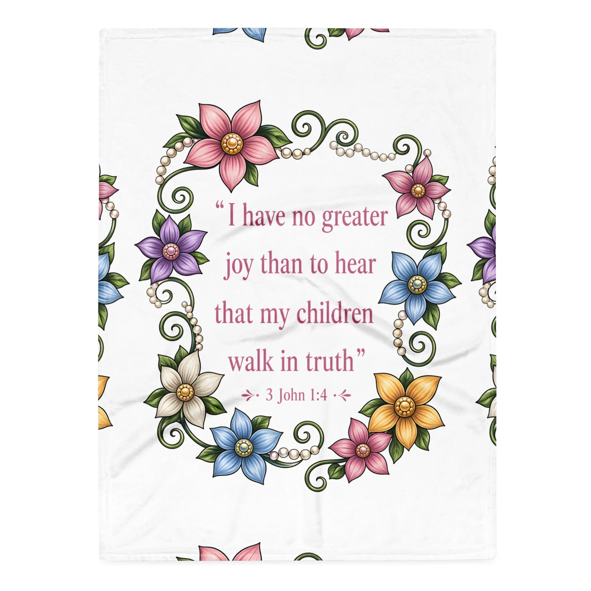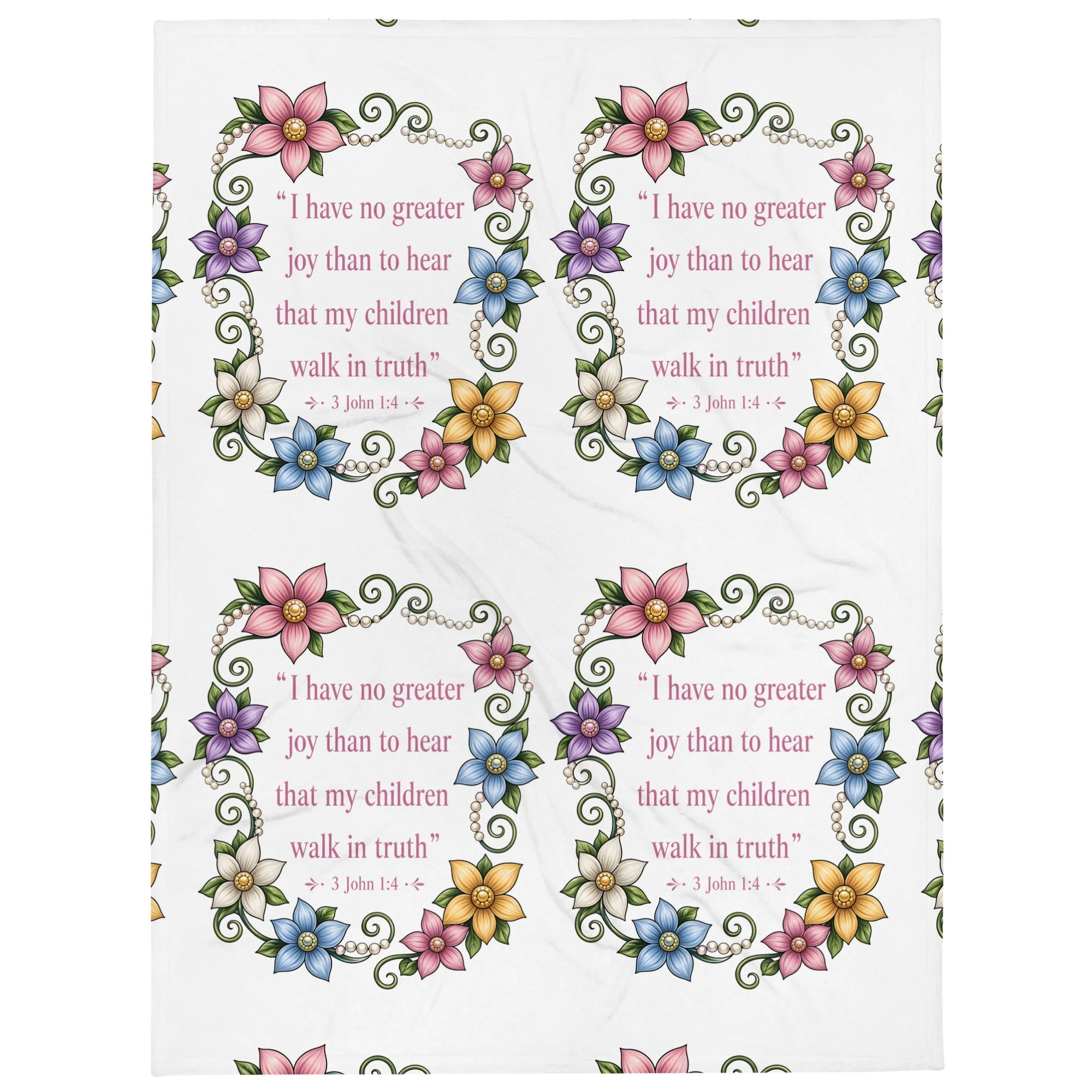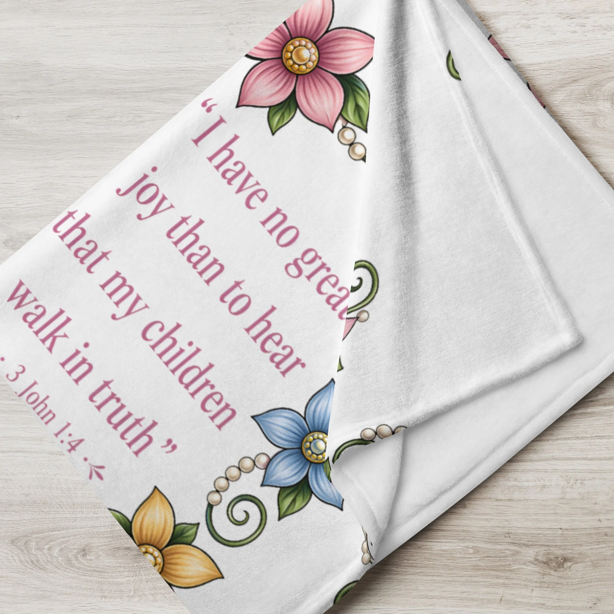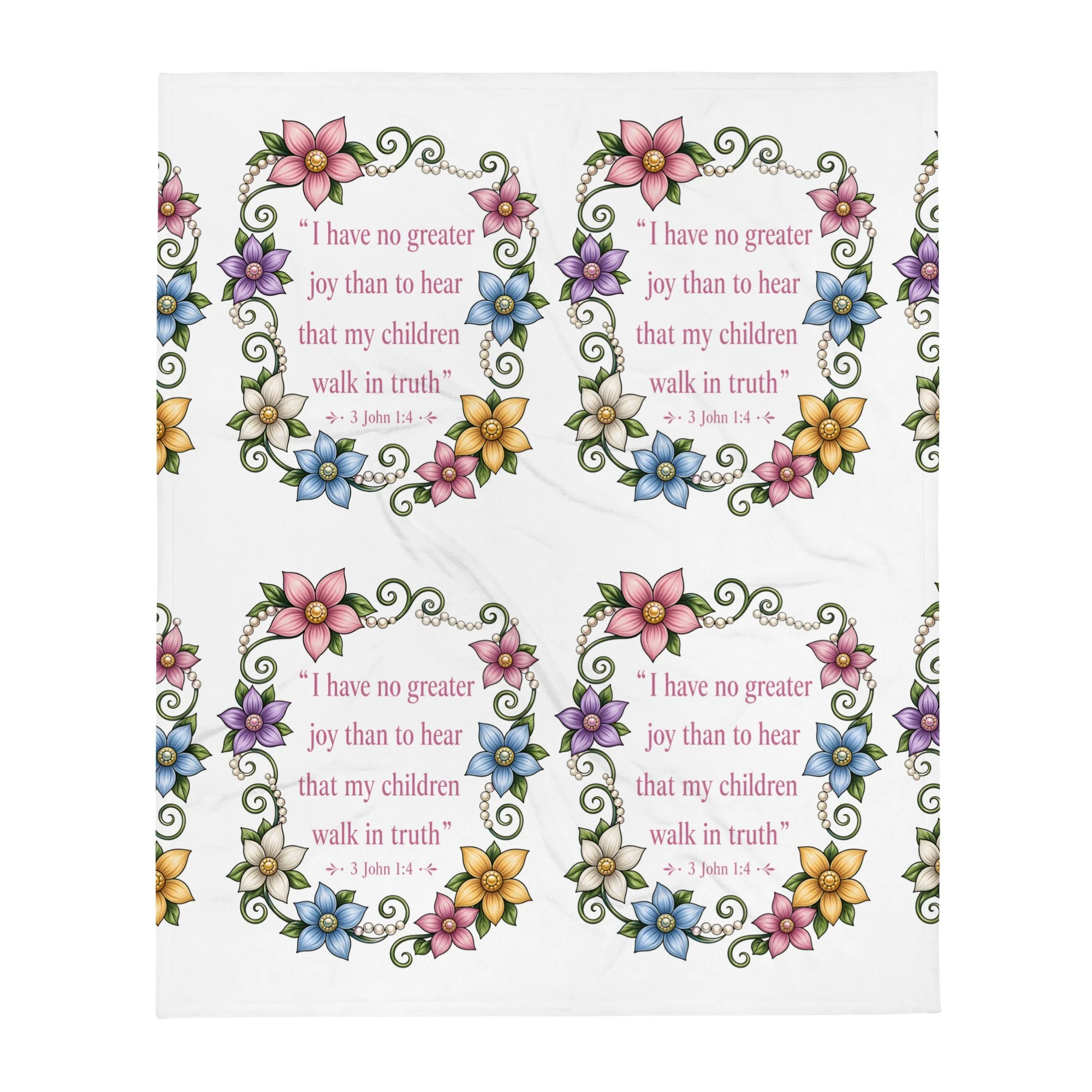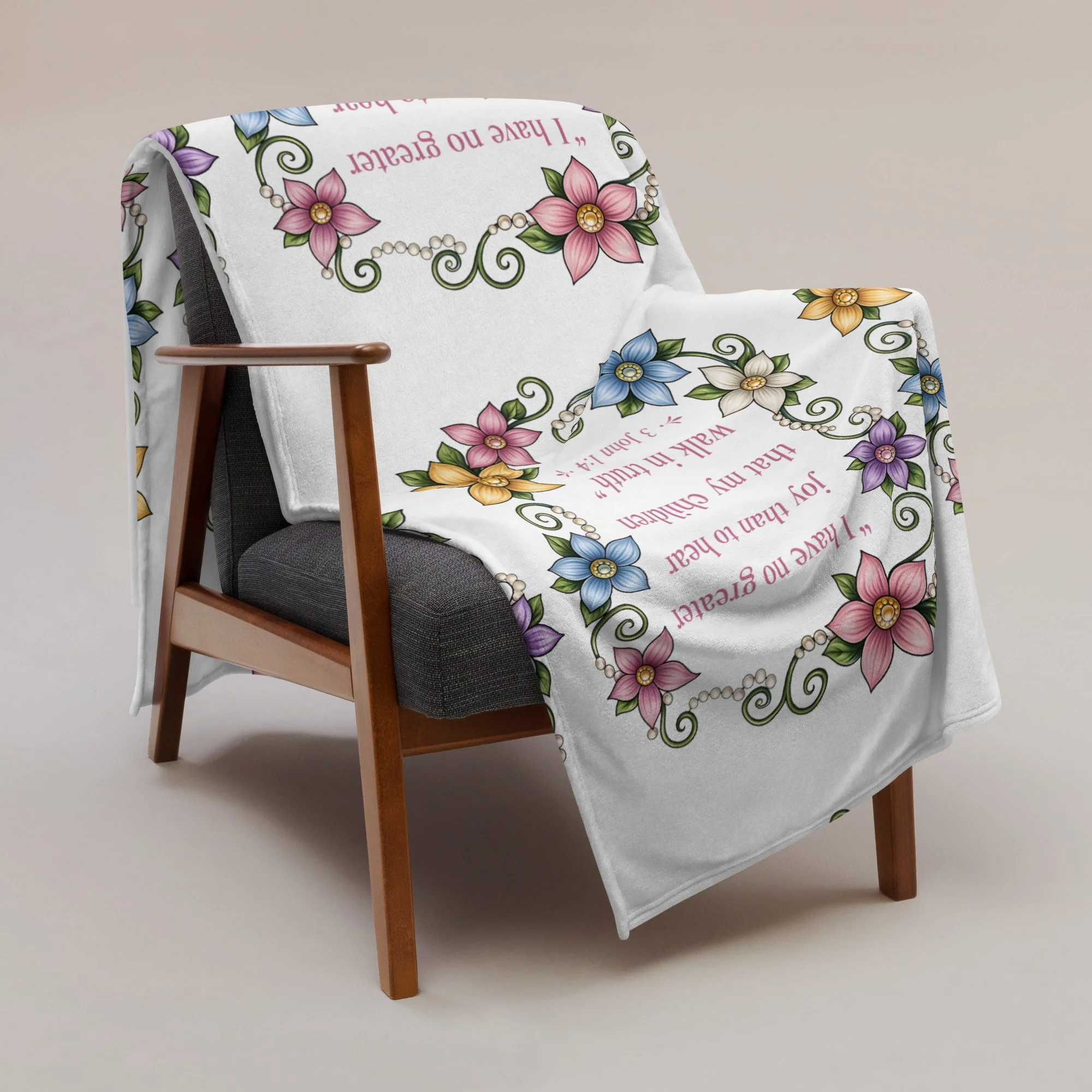 The “Walk in Truth” Scripture Throw Blanket is more than just a cozy addition to your home—it’s a daily reminder of what matters most. Featuring the powerful words of 3 John 1:4, this design beautifully declares: “I have no greater joy than to hear that my children walk in truth.”