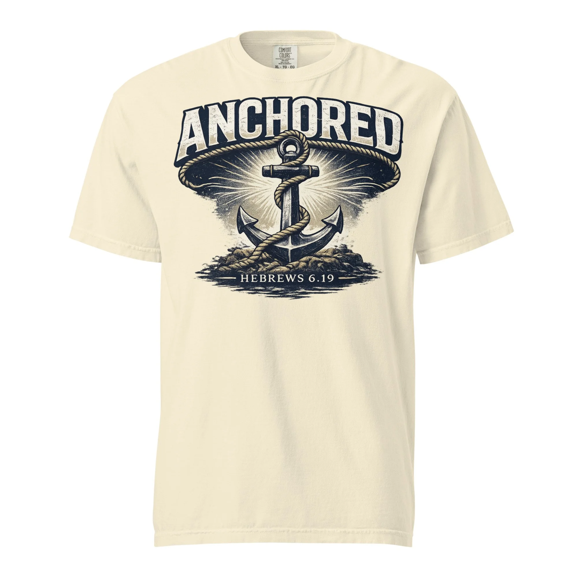 The “Anchored” Tee is inspired by Hebrews 6:19—“We have this hope as an anchor for the soul, firm and secure.” This design is a powerful reminder that our hope in Christ keeps us steady through every storm.