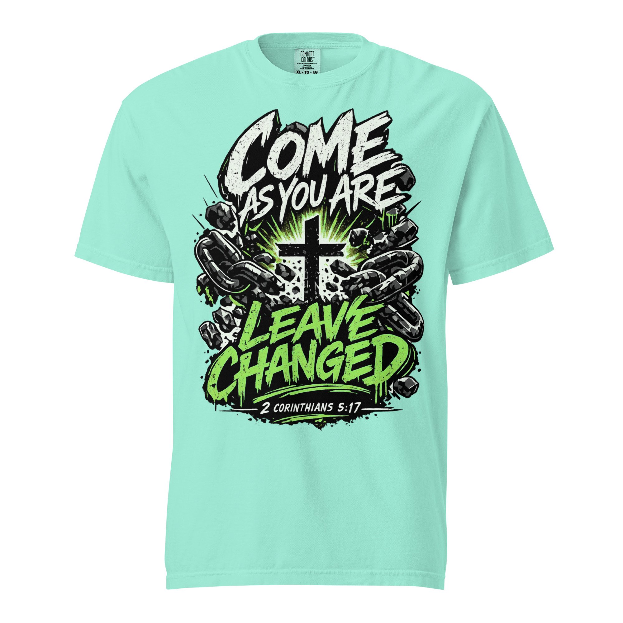 The “Come As You Are – Leave Changed” Tee captures the heart of the Gospel: grace meets you where you are, but God loves you too much to leave you there. This bold, eye-catching design represents transformation, renewal, and the life-changing power of Christ.