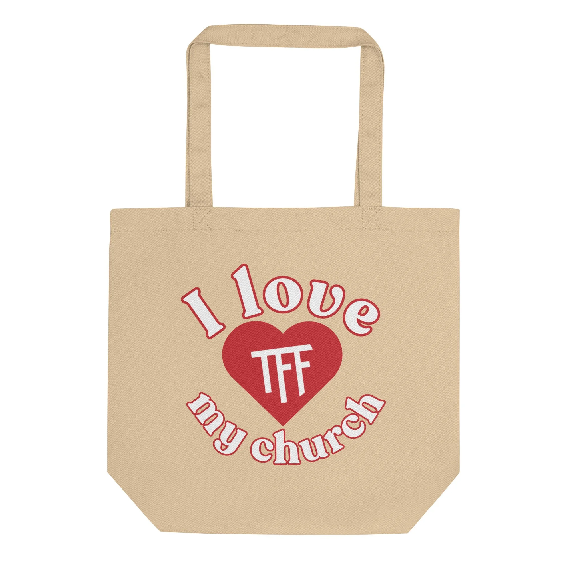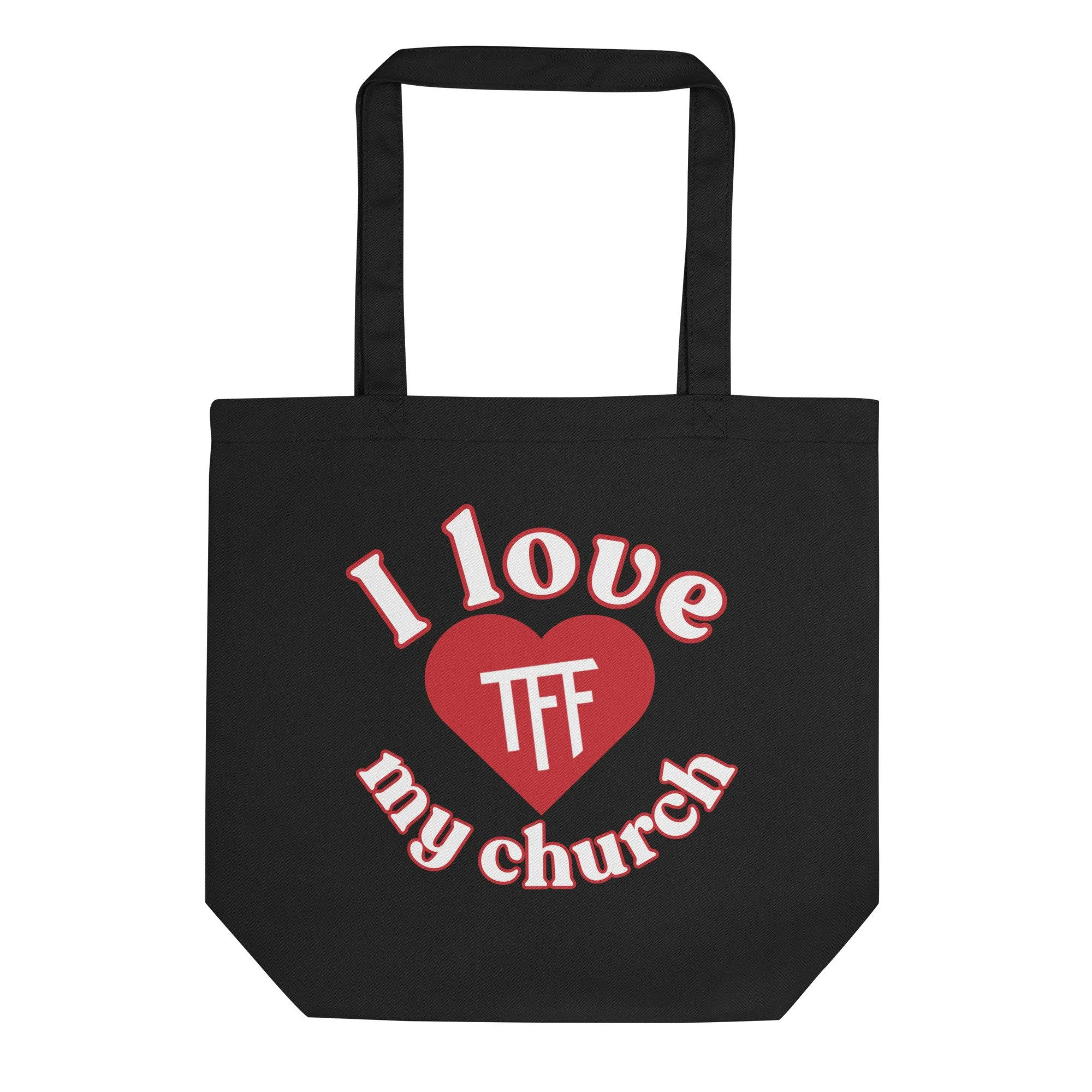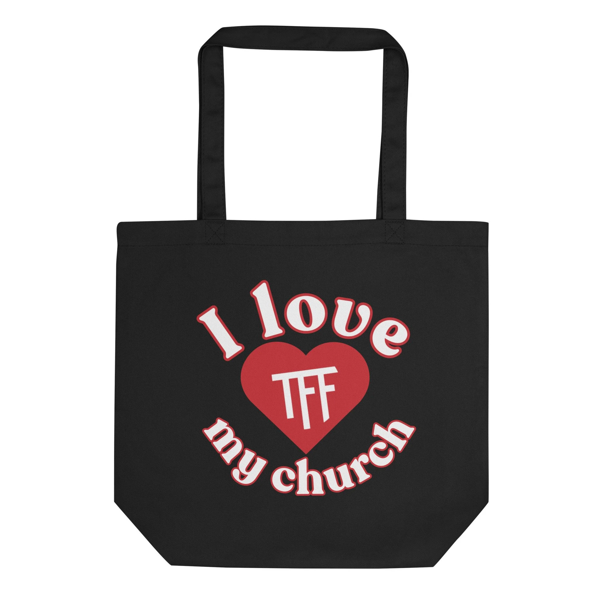 Carry what matters—literally. This “I Love My Church” tote bag is the perfect everyday essential that combines purpose, style, and practicality. Whether you're heading to church, the store, school, or work, this bag lets you represent TFF wherever life takes you.