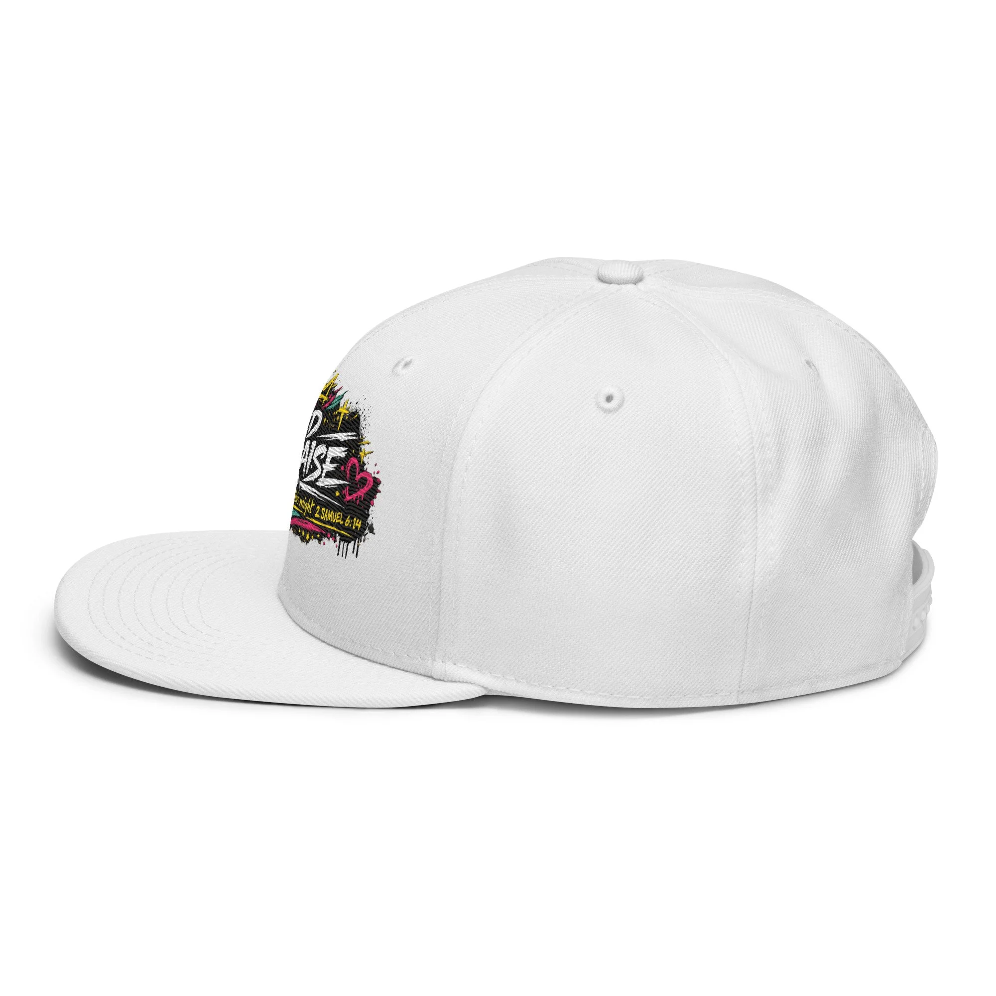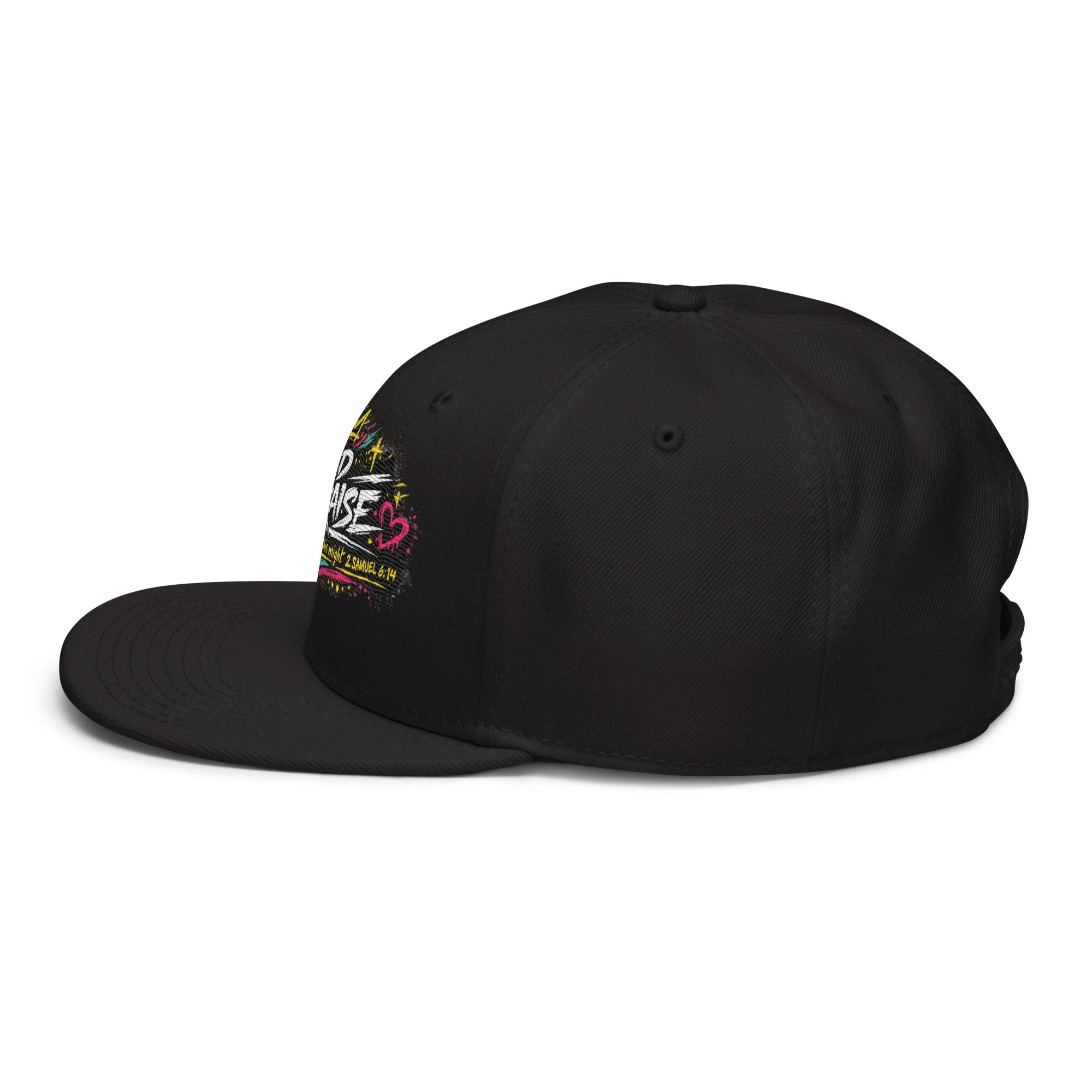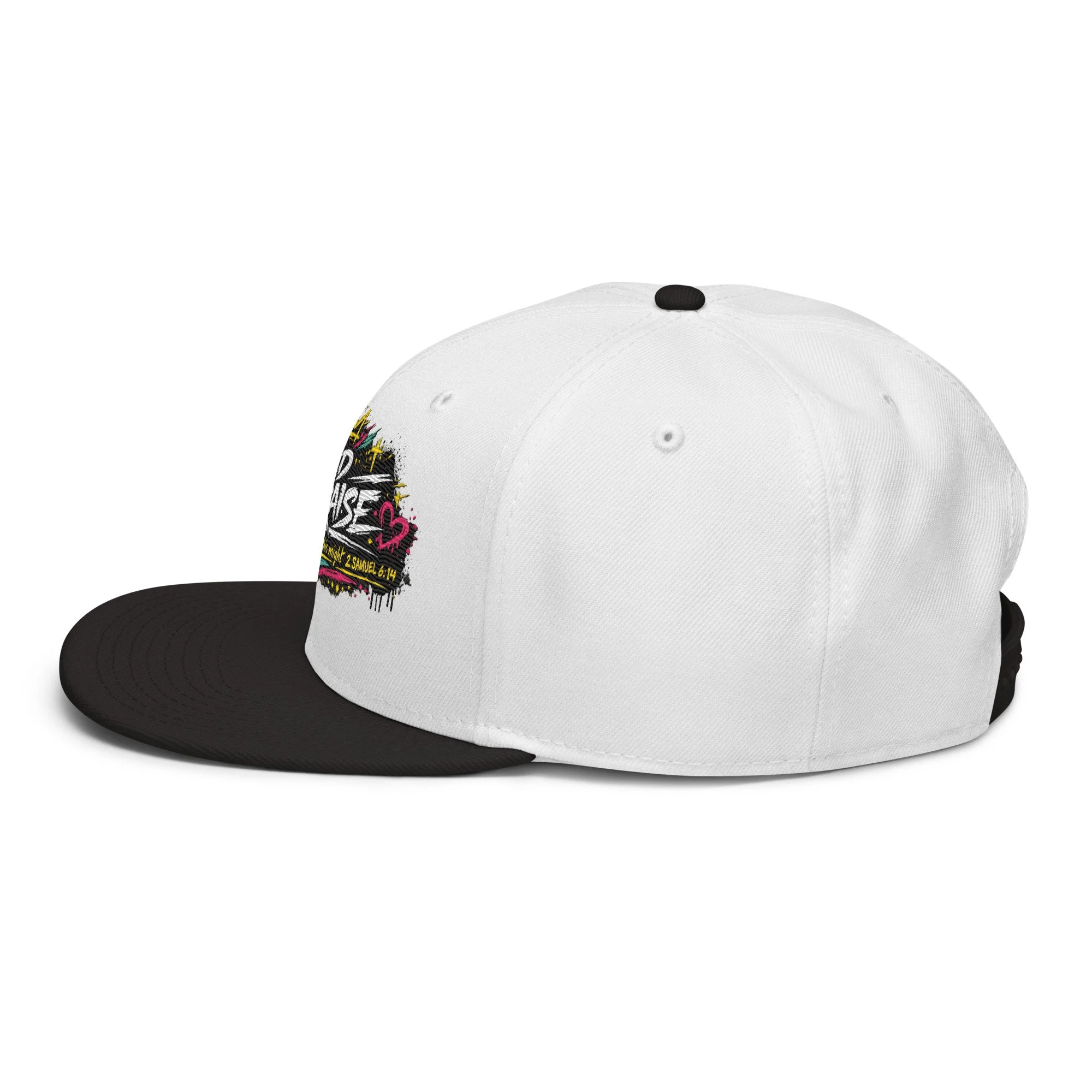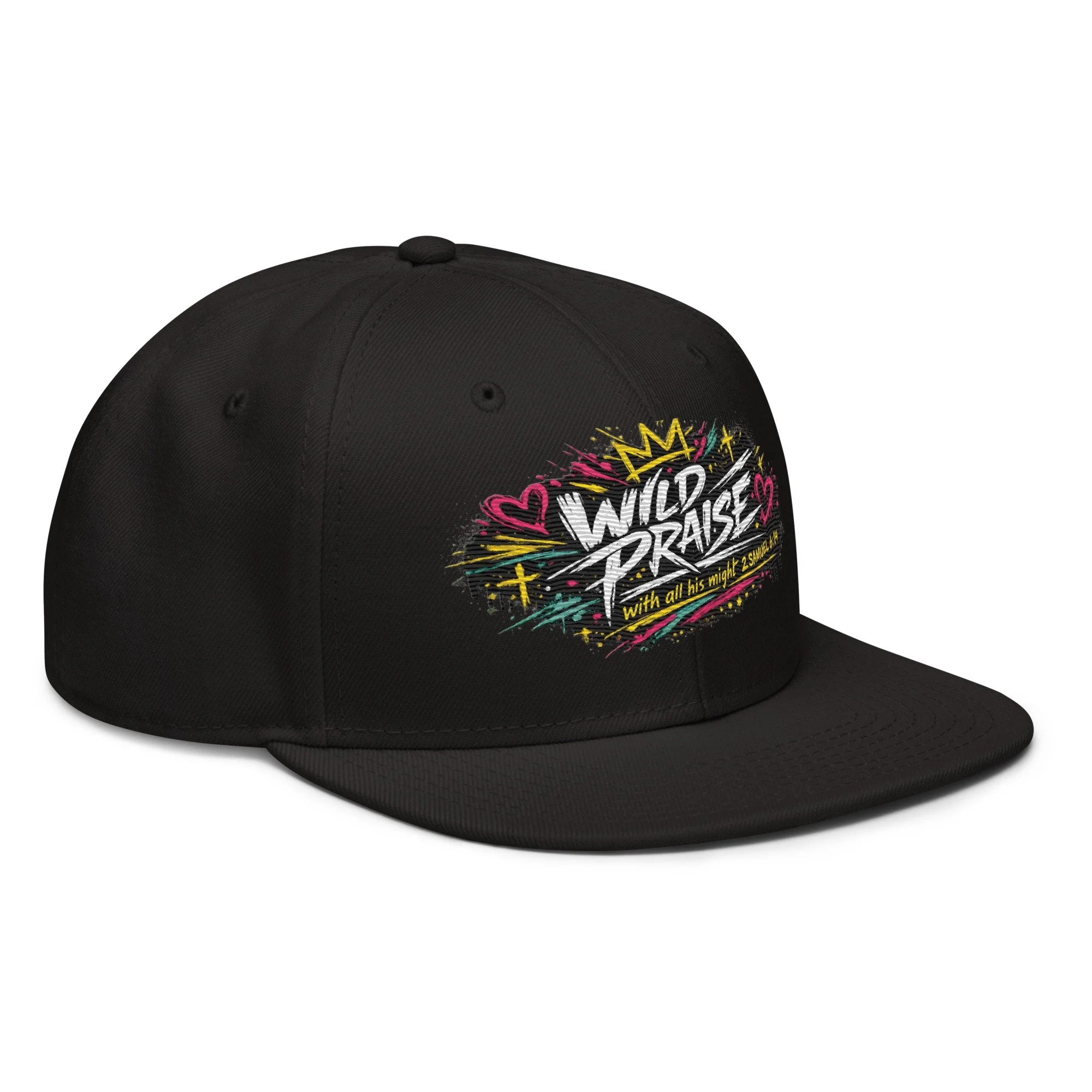 Wild Praise Snapback brings bold faith and streetwear energy together in one clean statement piece. Inspired by 2 Samuel 6:14, this design reflects the kind of praise that is passionate, unashamed, and all in. With vibrant graffiti-style artwork, crown details, hearts, crosses, and electric paint accents, this snapback was made for those who want their style to speak life, joy, and worship.